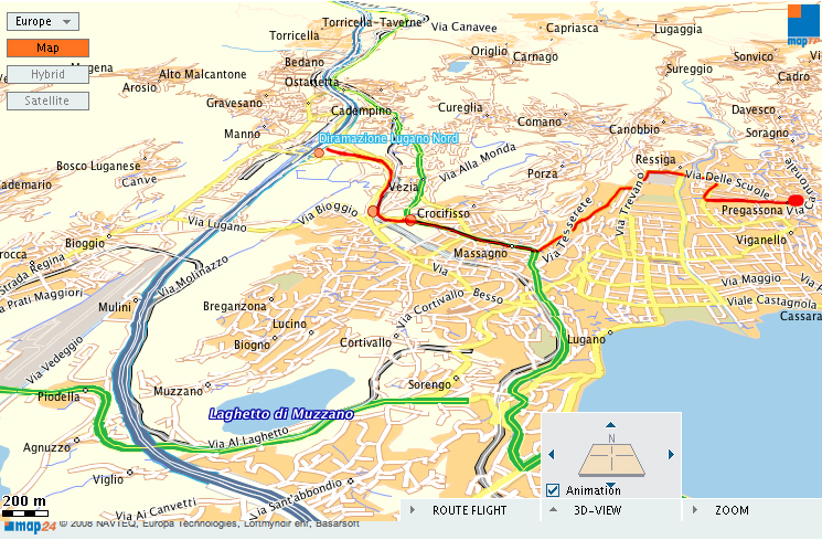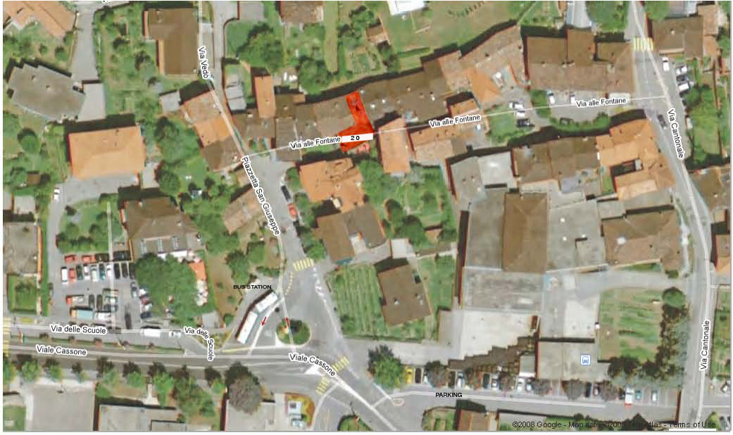 Close-up of the "nucleo", the village-center Our house is at "Via alle Fontane 20" Note: -the Bus-Station, ea 10 min to downtown, in 15 min -the Parking (there are other within walking distance) -the restaurant (maybe the best pizzeria in Lugano?) |